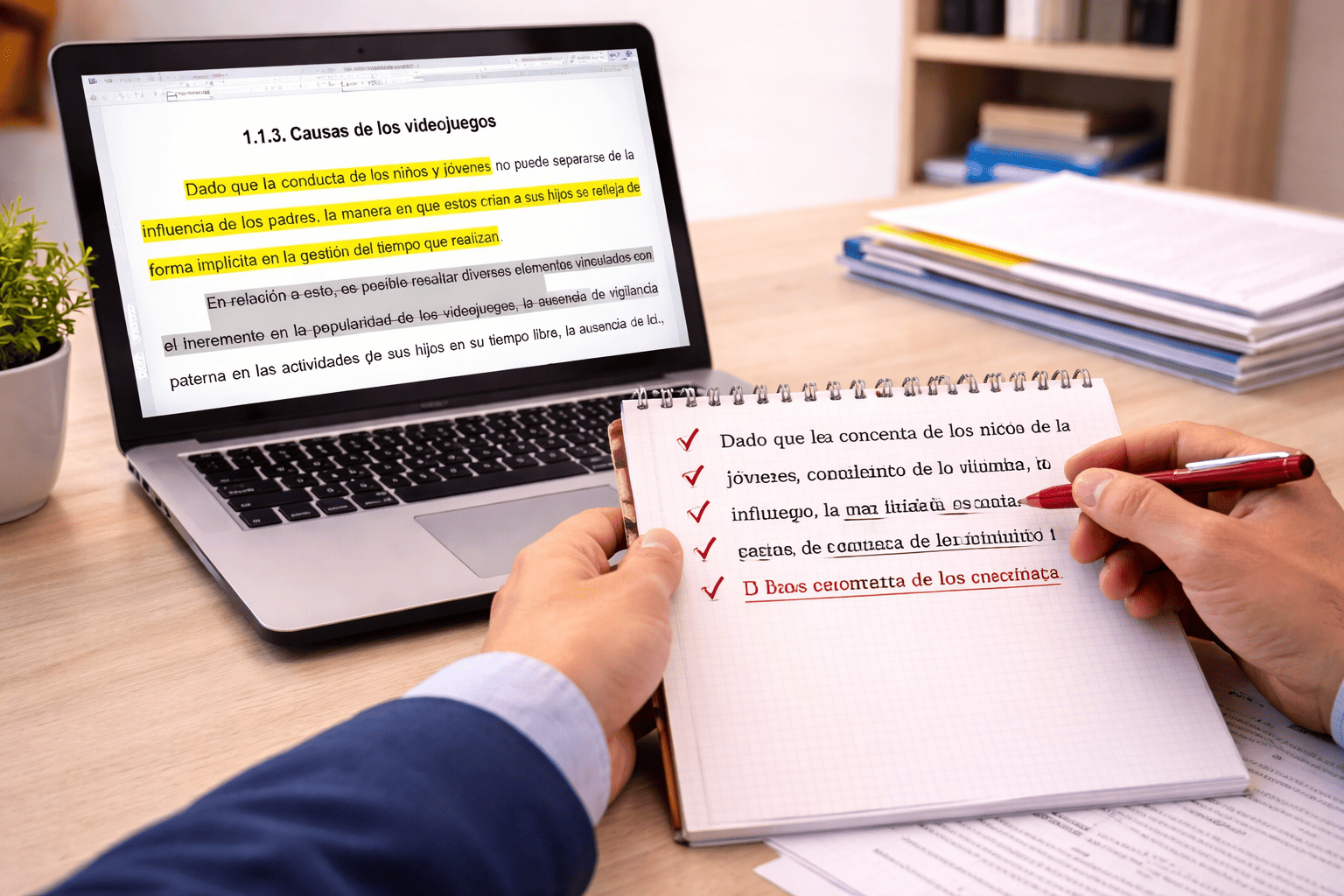 Te ayudamos a corregir y mejorar tu tesis según las observaciones de tus asesores o jurados. Trabajamos con precisión para resolver comentarios y asegurar que tu trabajo cumpla con los requerimientos solicitados, mejorando la calidad final.